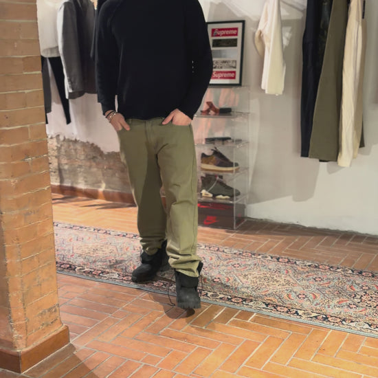 Prodotto a mano interamente in Italia con cuciture visibili e taglio boxy fit.